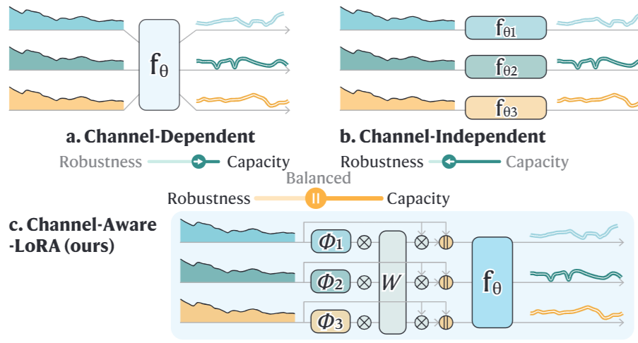 TL;DR: A channel-aware low-rank adaptation method to balance channel independence and channel dependence.